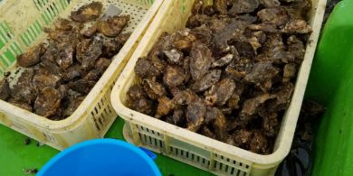 今日は牡蠣の手入れもしています。少しでも放っておくと汚れてしまいます。こびり付いた汚れなどを丁寧…
