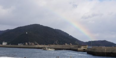 今日は強風、というより暴風…めちゃめちゃ風が強く海は大荒れです。そんな中、虹を発見♪…